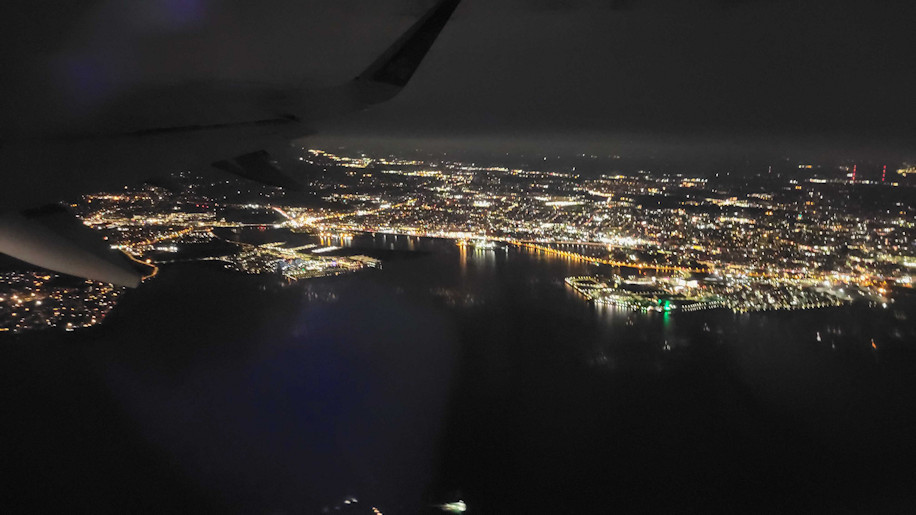 We had chicken with corn, a roll, feta salad, and chocolate mousse. I took pictures of the night sky. Some came out really well. Watched a Christmas Office and some Season 3 of The Derry Girls. Gwyn chatted with the lady sitting next to her. I dozed some, but mostly just rested.